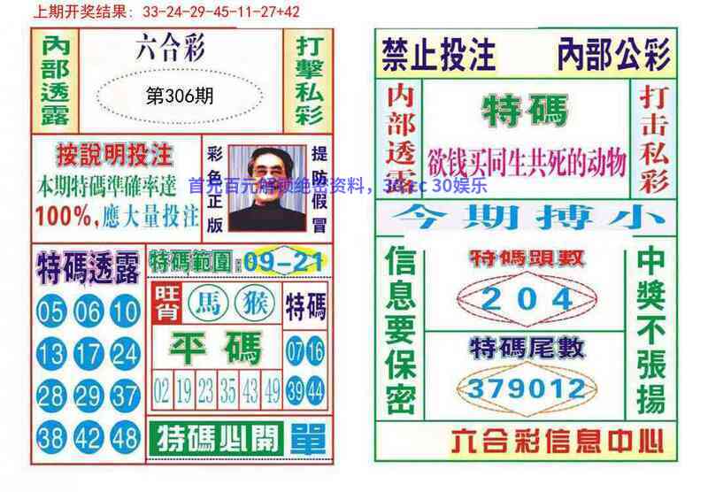 | 299期 | 绿波蓝波 | 蛇49准 |